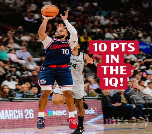 快船队的莱纳德因为脚踝扭伤缺席。快船队在主场开局不错,外线迅速开火,琼斯、大洛、邓恩各中三分,他们以13-1领先。尚帕尼补篮止血,加兰上篮率队又拿4分扩大优势。马刺队进攻慢慢复苏,福克斯突破得手,卡斯尔扣篮,他们率队连追8分,首节还有5分50秒时马刺队以11-17落后。快船队暂停后加兰连中2个三分球再次拉开,文班亚马空接扣篮止血,之后的比赛两队拉锯几个回合,马瑟林和米勒分别跳投命中,快船队以37-26领先11分。布莱恩特追回3分结束首节,马刺队以29-37落后。加兰单节得到10分和2次助攻。