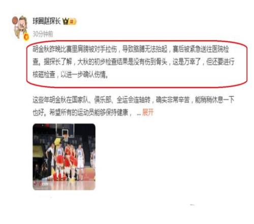 让人感到遗憾的是,鲁吐布拉蛮力十分大,反向掰扯胡金秋的手臂,硬生生地把球从胡金秋手上抢了下来,鲁吐布拉这个动作,让胡金秋瞬间疼到面部扭曲,手臂似乎完全不能动了……后来,大家也是看到了,胡金秋也是无法再坚持比赛,只能是无奈提前退场,前往医院进行检查和治疗。