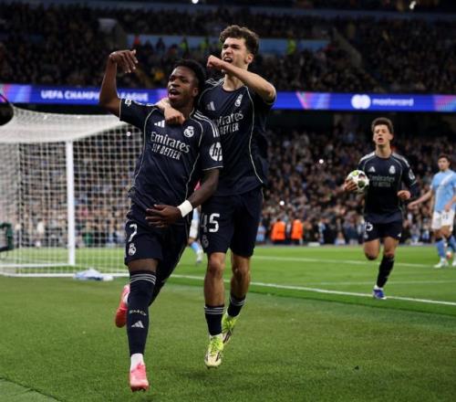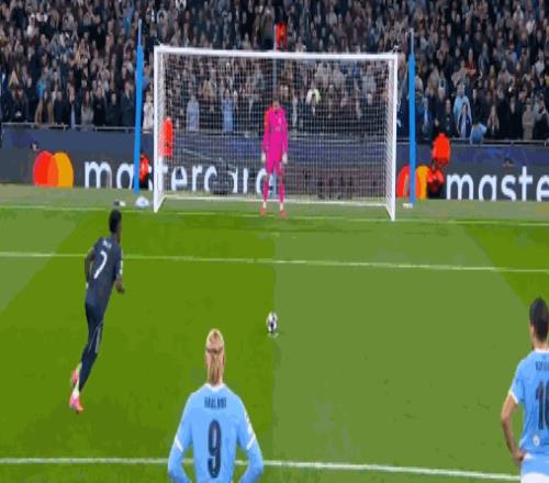 比赛刚刚开打第1分钟,曼城后防就被打穿,巴尔韦德前插获得了单刀机会,可惜射门绵软无力被多纳鲁马轻松没收,不过在第22分钟,客场作战的皇马,还是率先取得了进球,B席禁区内手球,直接被主裁判红牌罚下,还给了银河战舰一粒点球,维尼修斯主罚命中,将比分改写为了1-0。