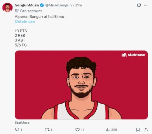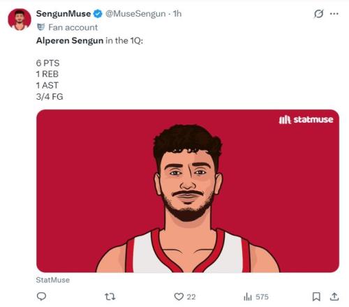 整个上半场申京17分钟,6中5,拿到10分3助攻2篮板0失误,有了申京后火箭多一个持球点的确会好得多,他也是帮助火箭咬住分差的关键,他也隔扣了艾顿一个。