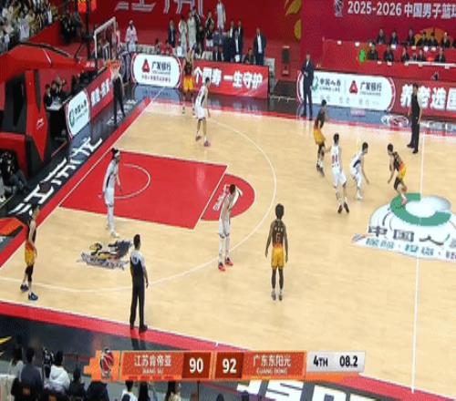 北京时间3月20日中国男子篮球职业联赛 常规赛,江苏肯帝亚对阵广东东阳光。半场江苏47-47广东,比赛还剩最后2分钟广东领先8分,江苏贾尔斯、刘正清、庞峥麟一波8-0追平,随后广东崔永熙暴扣领先2分,紧跟江苏吴羽佳三分打板反超1分,留给广东2秒徐杰反绝杀三分不中,最终江苏93-92广东。