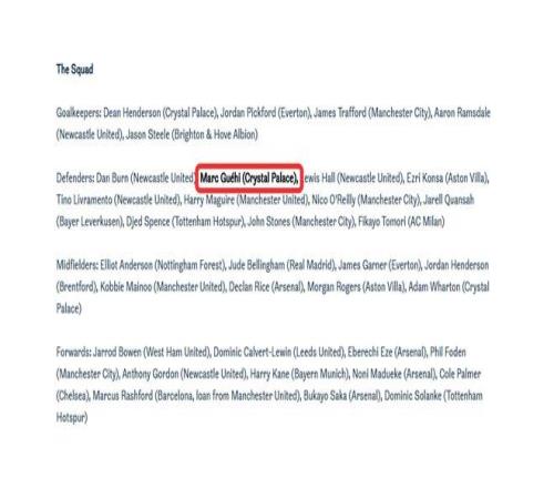 当地时间周五上午,主帅托马斯-图赫尔公布了对阵日本和乌拉圭两场热身赛的35人大名单。然而,在官方名单中,25岁的格伊仍被标注为效力于水晶宫的球员。