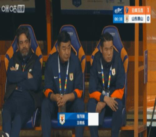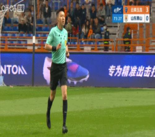 第74分钟,玉昆教练组对判罚不满吃到黄牌。↓