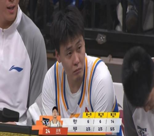 第三节比赛,北京球员赵睿大爆发,他上来就连拿12分直接带队反超,单节5中5,三分球2中2,罚球2中2,轰下14分2助攻1抢断的数据。