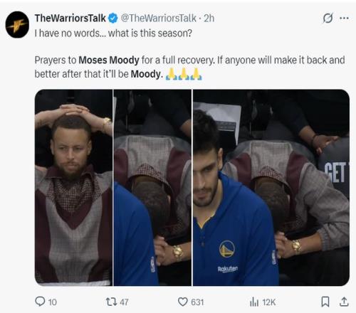 有勇士球迷沮丧发声:穆迪未来可能都无法再登场打比赛了。