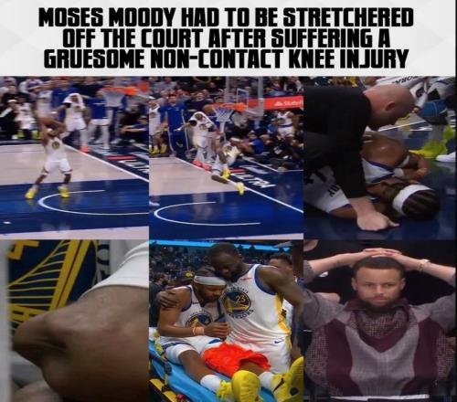 北京时间3月24日,刚刚伤愈复出的摩西-穆迪再度遭遇了毁灭性的伤病,他在加时赛一次快攻中无对抗左膝反关节,场面触目惊心勇士与独行侠的一些球员甚至看哭了,库里戴着大金表捂头沮丧。