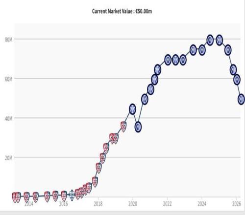 巴雷拉德转身价经历四连跌,从巅峰8000万欧跌至5000万