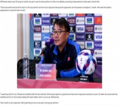 体育播报3月8日宣 据亚足联官网报道,朝鲜女足主教练李松浩在对阵中国女足的赛前新闻发布会上表示,球队尚未展...