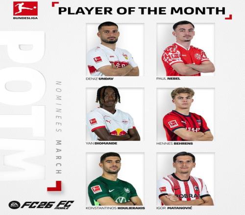 德甲3月最佳球员候选:昂达夫领衔,迪奥曼德在列